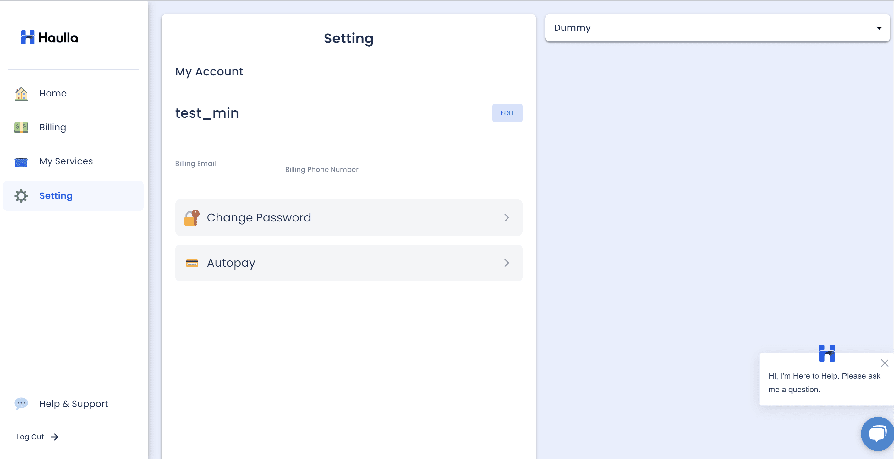 * On the Setting screen, you can edit your profile, change your password and manage your auto-payment. To set up autopay, please click Autopay button. You can then move on to the autopay screen.