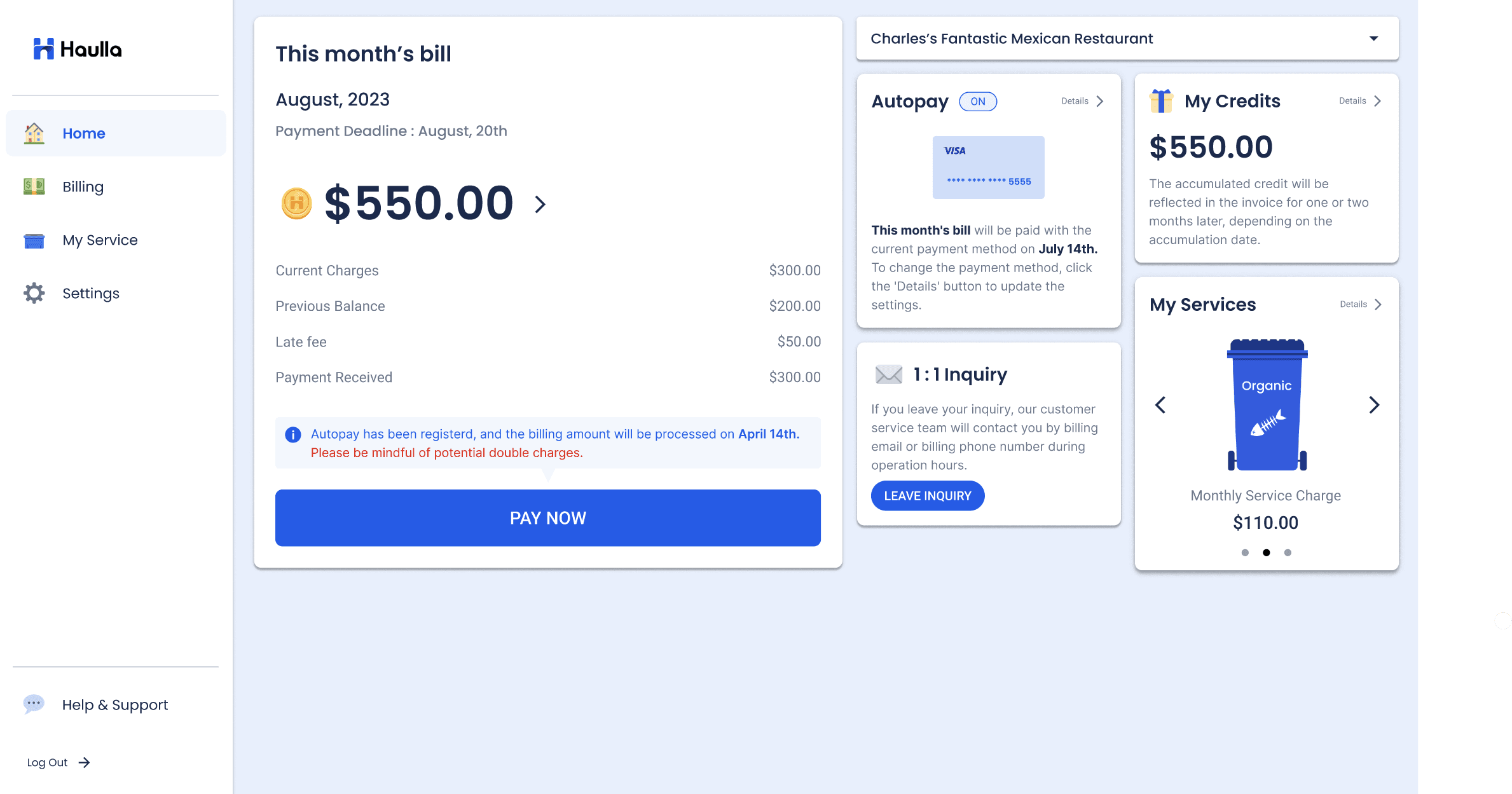 On the Autopay screen, you can see auto-payment status for all your businesses. You can set up your autopay by clicking the start autopay button of the business you want to register autopay.